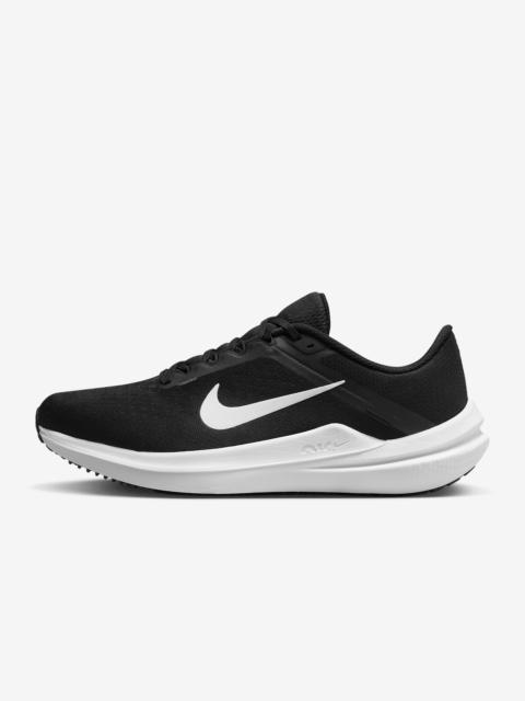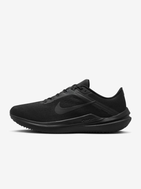 Responsive cushioning provides a springy ride for everyday runs. Experience energy return with encapsulated Nike Air cushioning and an accommodating fit with an elastic midfoot band. Plus, a revamped toe box offers improved comfort and fit. Benefits - Breathable engineered mesh upper - Encapsulated Nike Air cushioning for a springy feel - Rubber waffle-inspired outsole for reliable traction - Elastic midfoot band to accommodate a variety of fits and activities - What’s New? A revamped toe box and added cushion to collar and tongue for a better fit. Product Details - Weight: Approx. 296 g (Men’s size 10) - Heel-to-toe drop: 10 mm - MR-10 Last - Our best, most consistent fit - Not intended for use as Personal Protective Equipment (PPE) - Shown: Black/Black/Anthracite/Black - Style: DV4022-001