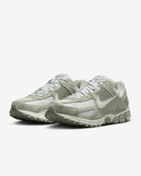 Carve a new lane for yourself in the Zoom Vomero 5—your go-to for complexity, depth and easy styling. The richly layered design includes textiles, leather and plastic accents that come together to make one of the coolest sneakers of the season. Benefits - Upper mixes real and synthetic leather for a layered look built to last. - Mesh panels and ventilation ports on the heel keep it light and breathable. - Snappy and responsive, Zoom Air cushioning helps provide a quick-off-the-ground sensation. - Plastic caging on the side creates a supportive feel. - Rubber outsole gives you durable traction. Product Details - Reflective details - Not intended for use as Personal Protective Equipment (PPE) - Shown: Jade Horizon/Light Silver/White/Phantom - Style: HF1553-300