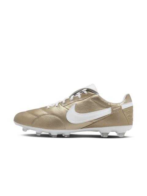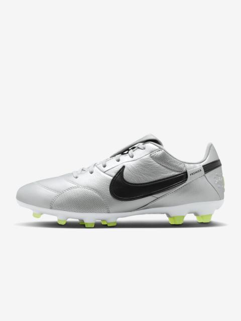 The Nike Premier 3 gets back to the basics with a timeless silhouette wrapped in supple real and synthetic leather—helping you to move confidently as an unstoppable force on the field. Product Details - For use on slightly wet, short-grass fields - Shown: Black/Amarillo/White - Style: AT5889-005 SIZE & FIT Snug fit; if you prefer a sghtly looser fit, we recommend ordering a half-size up