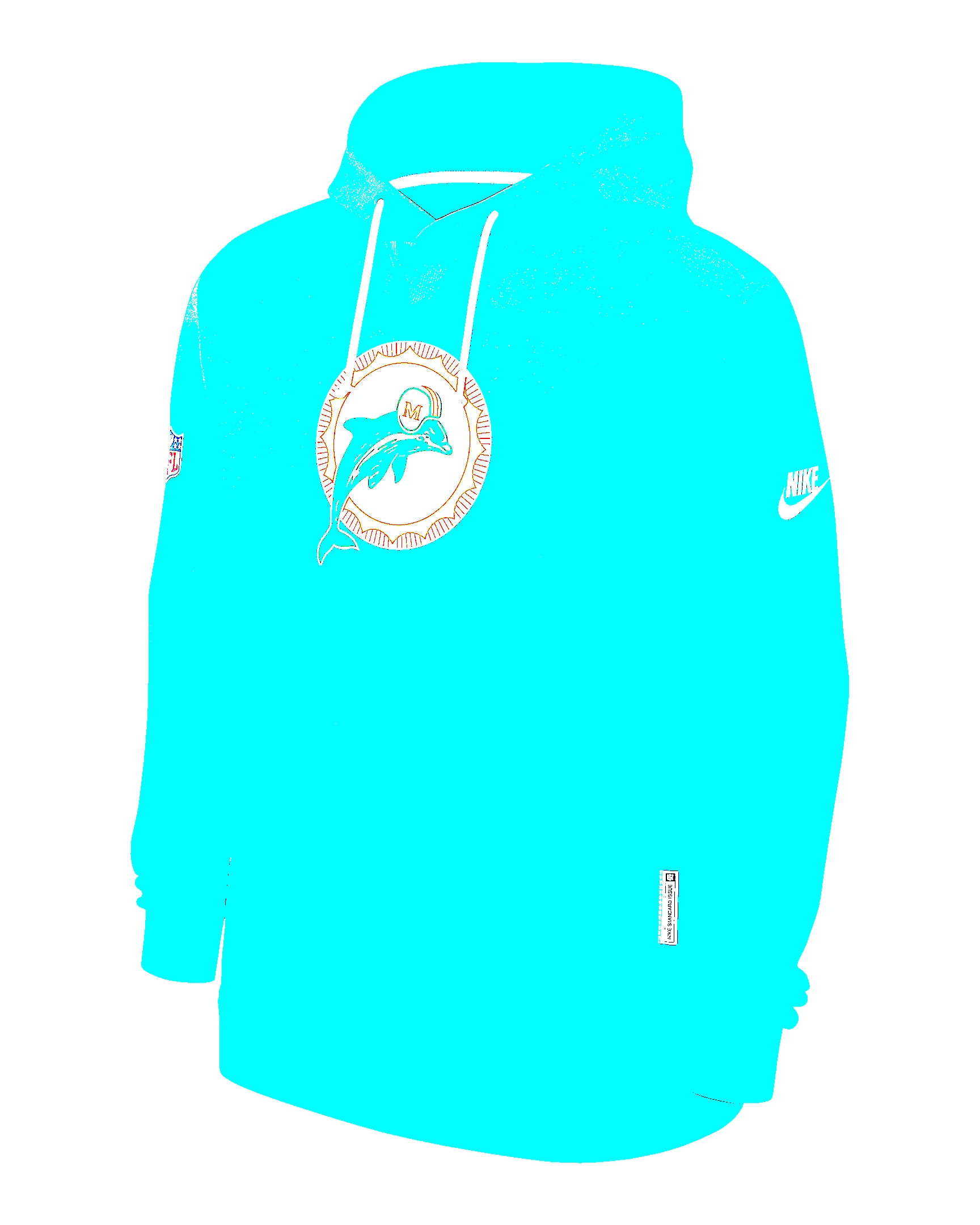 Featuring vintage team details, the Alt Offensive Set Play Sideline Hoodie combines sweat-wicking technology with a soft fleece lining to help you comfortably support the Miami Dolphins in cooler weather. Benefits - Nike Dri-FIT technology moves sweat away from your skin for quicker evaporation, helping you stay dry and comfortable. - Dolman sleeves help increase range of motion with a roomy fit under the arms. Product Details - Hood with drawstring - Front pocket - Zippered pocket at right side - 53% polyester/47% cotton - Machine wash - Imported - Shown: Aqua - Style: 03AZ4DZQ9P-V4T