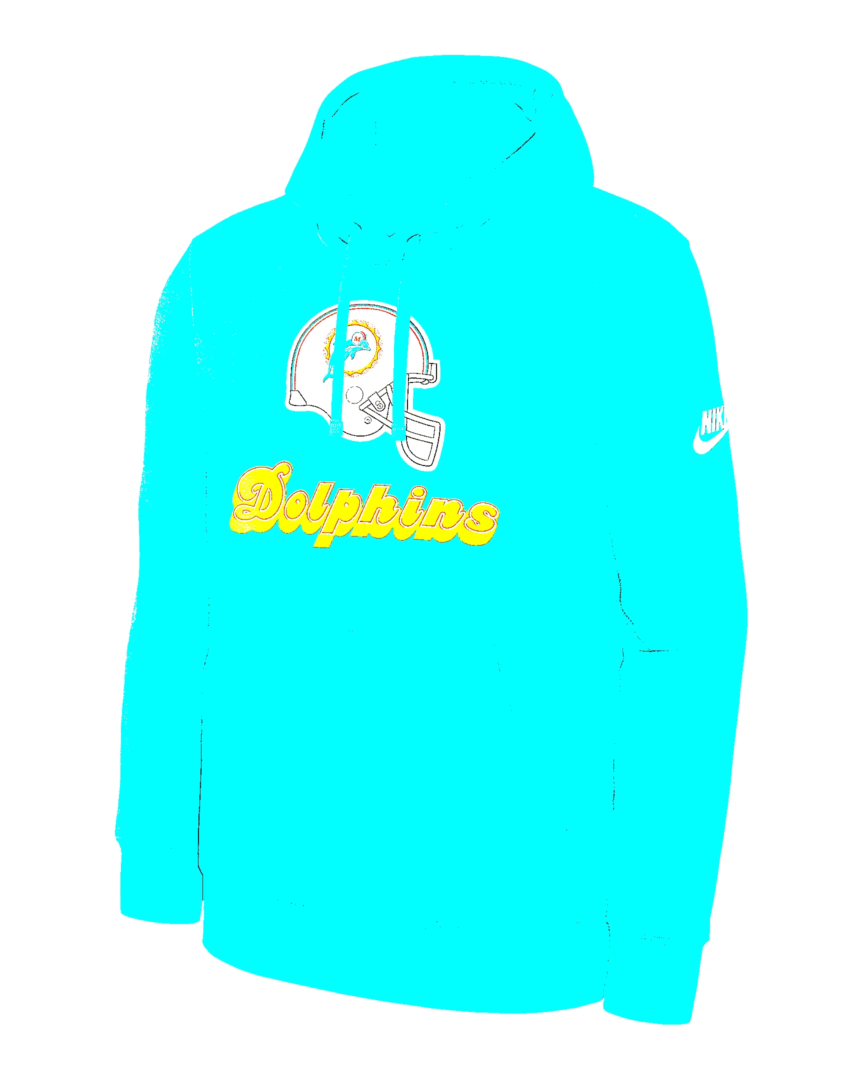 Designed with throwback team details, this Best Season Rewind Club Hoodie features a cozy fleece lining to help you comfortably support the Miami Dolphins in chilly temperatures. Product Details - Front pocket - Hood with drawstring - 82% cotton/18% polyester - Machine wash - Imported - Shown: Aqua - Style: NKDK4DZ9PV-WUG