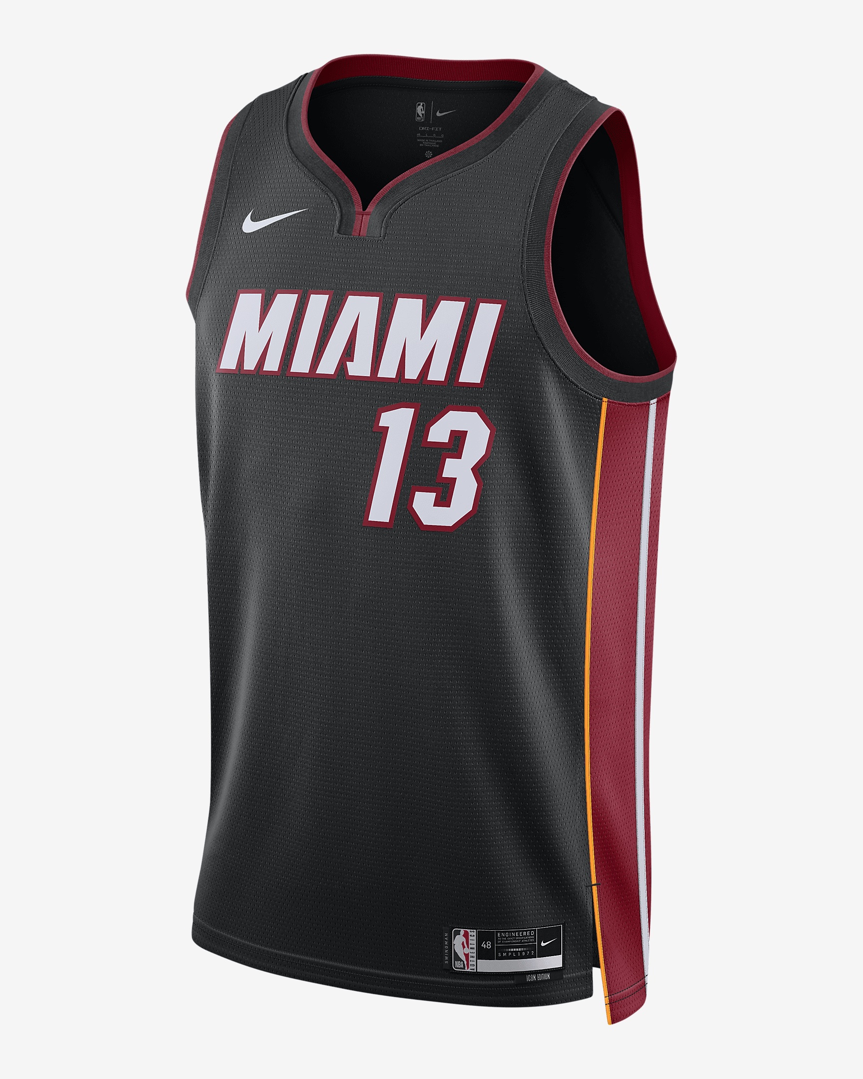 Every team has its true colors, an unmistakable identity that sets it apart from the rest of the league. Honoring a rich hoops heritage, this Miami Heat jersey is inspired by what the pros wear on the hardwood, from squad details to lightweight, sweat-wicking mesh. It helps keep you dry and cool on or off the court while you rep your favorite player and the game you love. Benefits - Nike Dri-FIT technology moves sweat away from your skin for quicker evaporation, helping you stay dry and comfortable. - Breathable mesh helps keep you cool on or off the court. Product Details - Twill player name and number - Heat-applied graphics - Jock tag at hem - 100% polyester - Machine wash - Imported - Shown: Black - Style: DN2011-014 SIZE & FIT Standard fit: easy and traditional If you typically wear men's styles, please select your usual size. If you typically wear women's styles, please size down.