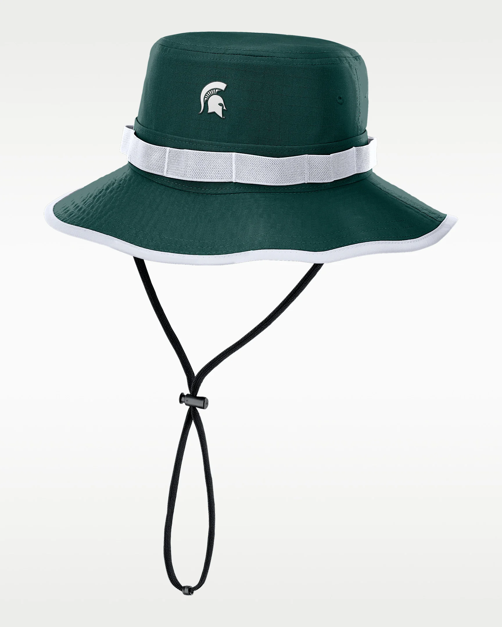 The Michigan State Sideline Apex Gameday Boonie Hat is perfect for the outdoors with a classic bucket design and wraparound brim providing 360-degree coverage. It pairs durable ripstop fabric with sweat-wicking technology for a cool, dry accessory. Benefits - Nike Dri-FIT technology moves sweat away from your skin for quicker evaporation, helping you stay dry and comfortable. - Adjustable chin strap with toggle helps keep the hat secure and in place. Product Details - 100% polyester - Hand wash - Imported - Shown: Green - Style: NC1B024NMST-CVH