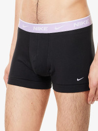 PRODUCT DETAILS - Nike pack of three stretch-cotton trunks - 95% cotton, 5% elastane - Mid-rise, branded elasticated waistband, supportive panel at front, logo print at front - Machine wash at 30°C - Model is 6ft 2in/1.88m and wears a size medium - Lightweight, stretchy - For hygiene reasons, we are unable to exchange or refund this product, unless faulty. Ref: R04402642