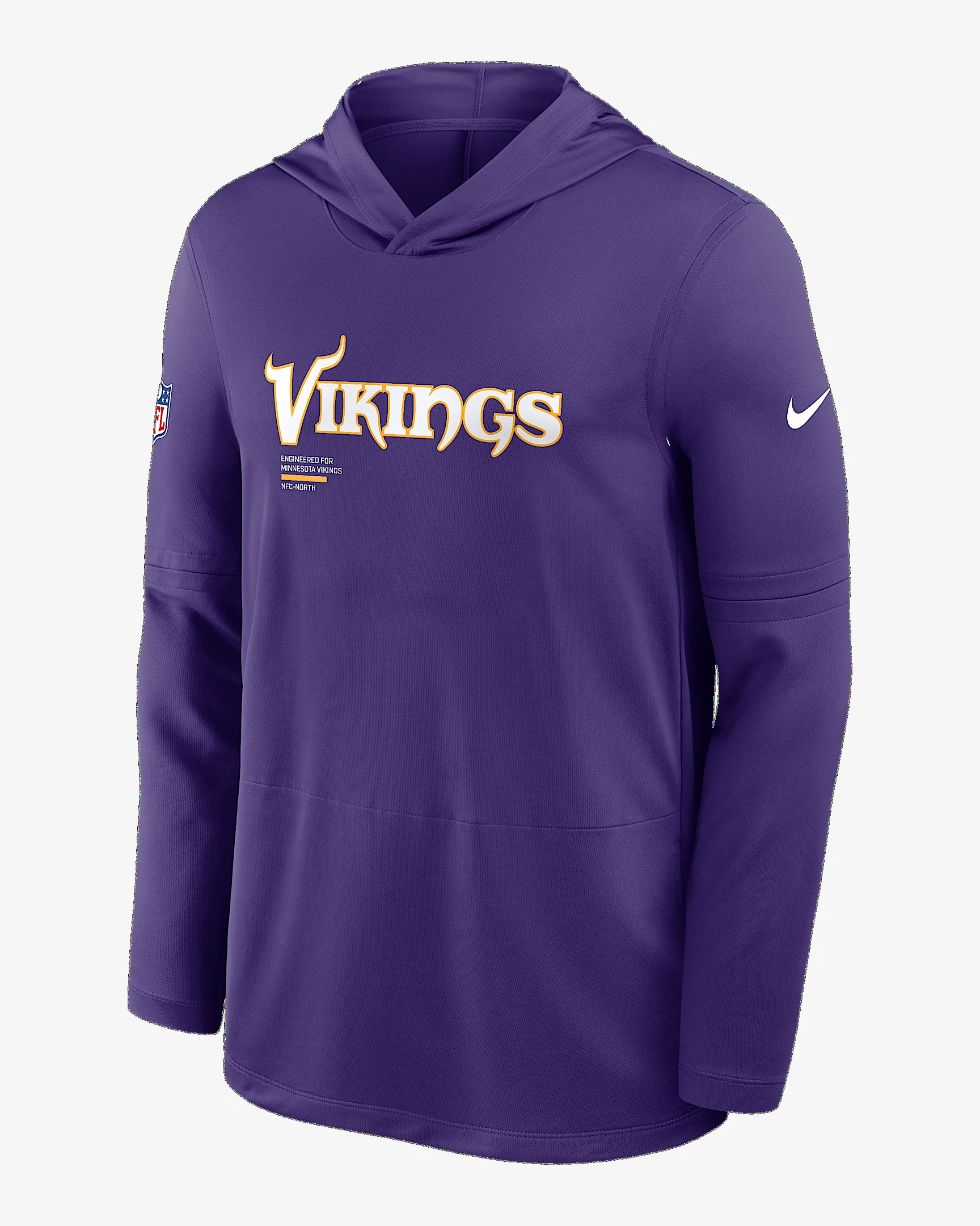 Perfect for lightweight coverage, the Pure Fury Sideline Top helps you comfortably support the Minnesota Vikings. It features sweat-wicking technology for ultimate comfort. Benefits - Nike Dri-FIT technology moves sweat away from your skin for quicker evaporation, helping you stay dry and comfortable. - Removable sleeves help add versatility for various conditions. Product Details - Front pocket - Hood without drawstring - 100% recycled polyester - Machine wash - Imported - Shown: Purple - Style: 03B951L9M-P8B