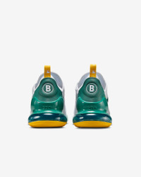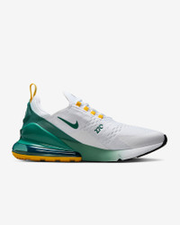 This Nike Air Max 270 gives you style, comfort and another way to rep you team. The Boston Red Sox design draws inspiration from Air Max icons and your squads colors to give you a fan favorite you'll wear again and again. Benefits - Max Air 270 unit delivers unrivaled, all-day comfort. - Sleek, running-inspired design roots you to everything Nike. - Woven and synthetic fabric on the upper provides a lightweight fit and airy feel. - Foam midsole feels soft and comfortable. - Stretchy inner sleeve and booty-like construction creates a personalized fit. Product Details - Rubber outsole - Two-piece midsole - Shown: White/Amarillo/Bicoastal - Style: HQ7998-100