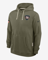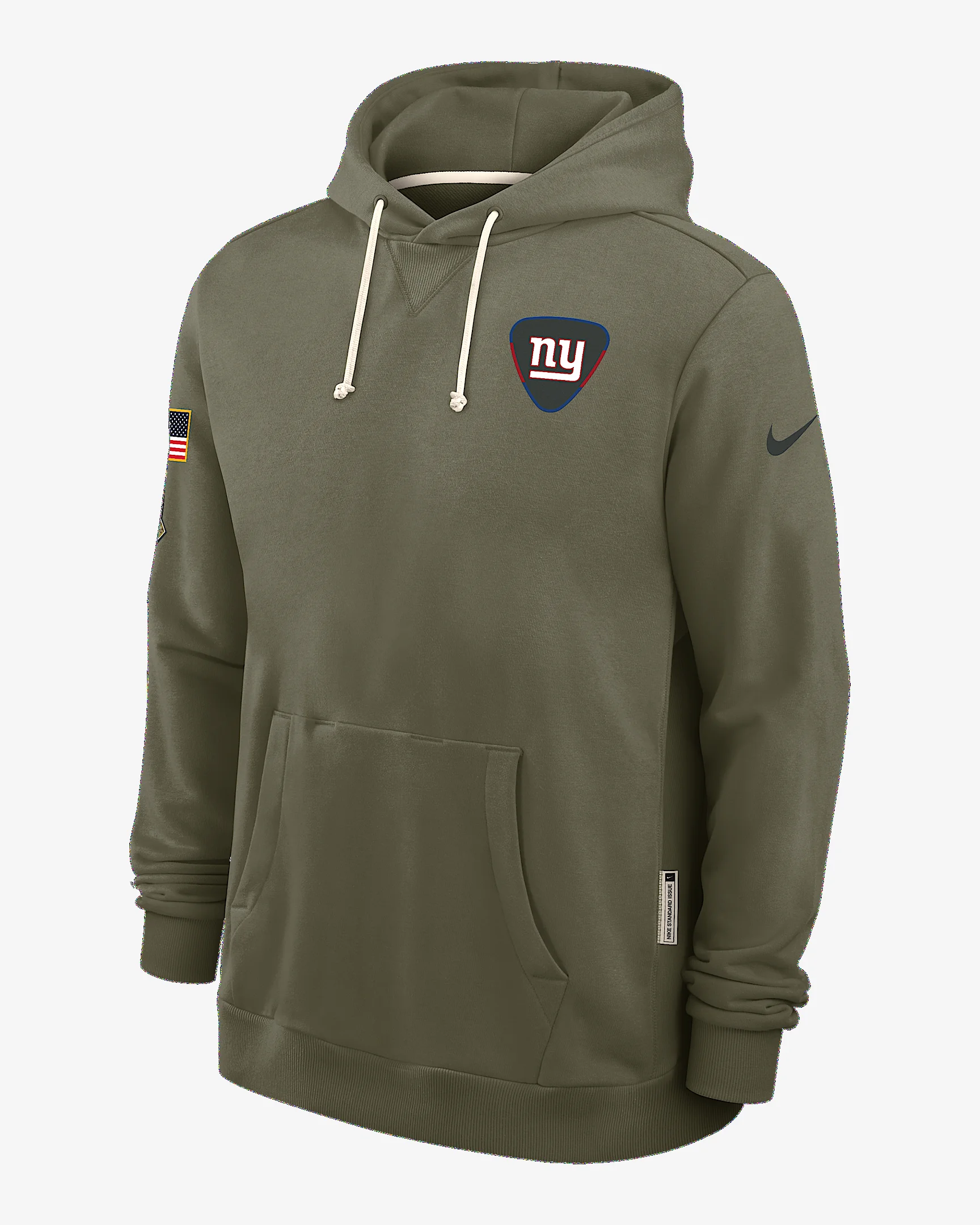 Featuring a military-inspired design, the Salute to Service Sideline Dominant Force Hoodie combines sweat-wicking technology with a soft fleece lining to help you comfortably support the New York Giants and active or retired service members in cooler weather. Benefits - Nike Dri-FIT technology moves sweat away from your skin for quicker evaporation, helping you stay dry and comfortable. - Dolman sleeves help increase range of motion with a roomy fit under the arms. Product Details - Hood with drawstring - Front pocket - Zippered pocket at right side - 53% polyester/47% cotton - Machine wash - Imported - Shown: Medium Olive - Style: 03AZ2DHA2N-D4V