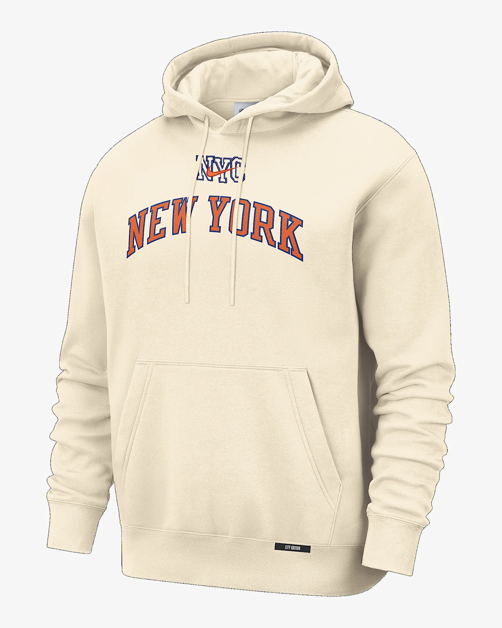You hold the New York Knicks near and dear to your heart. This game. This Knicks team, means something to you, which is why this city edition hoodie is special. It helps keeps you comfy all year-round and speaks to the illustrious heritage of your favorite franchise. Benefits - Smooth on the outside, slightly fuzzy on the inside, our midweight semi-brushed fleece helps keep you cozy while still being breezy. It’s a comfy layer to wear year-round, perfect for those tricky in-between temps. Product Details - Pouch pocket - Ribbed hem and cuffs - Body: 79% cotton/21% polyester. Rib: 98% cotton/2% elastane. Hood Lining: 79% cotton/21% polyester. - Machine wash - Imported - Shown: Natural - Style: HQ5555-120 SIZE & FIT Standard fit: easy and traditional
