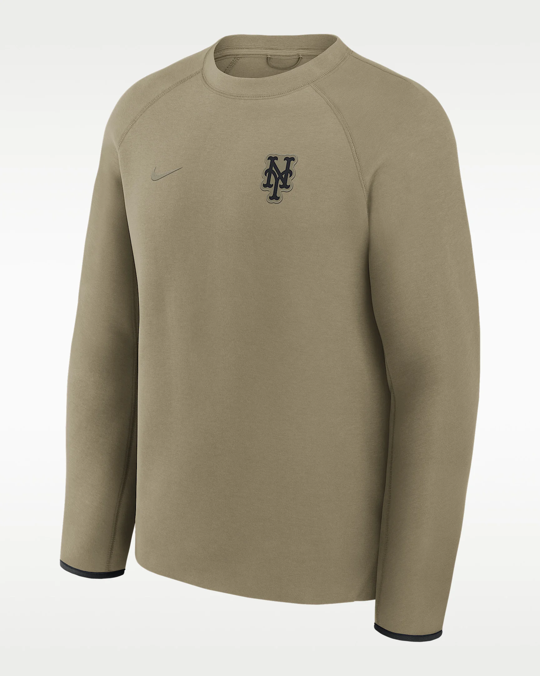 Featuring raglan sleeves with a wider underarm area and premium, heavyweight fleece fabric that feels smooth on the inside and outside, this New York Mets Tech Fleece Crew helps keep you warm in chilly temperatures as you support your favorite MLB club. Product Details - 47% recycled polyester/42% cotton/11% organic cotton - Machine wash - Imported - Shown: Neutral Olive - Style: 05L60IDHNME-GML