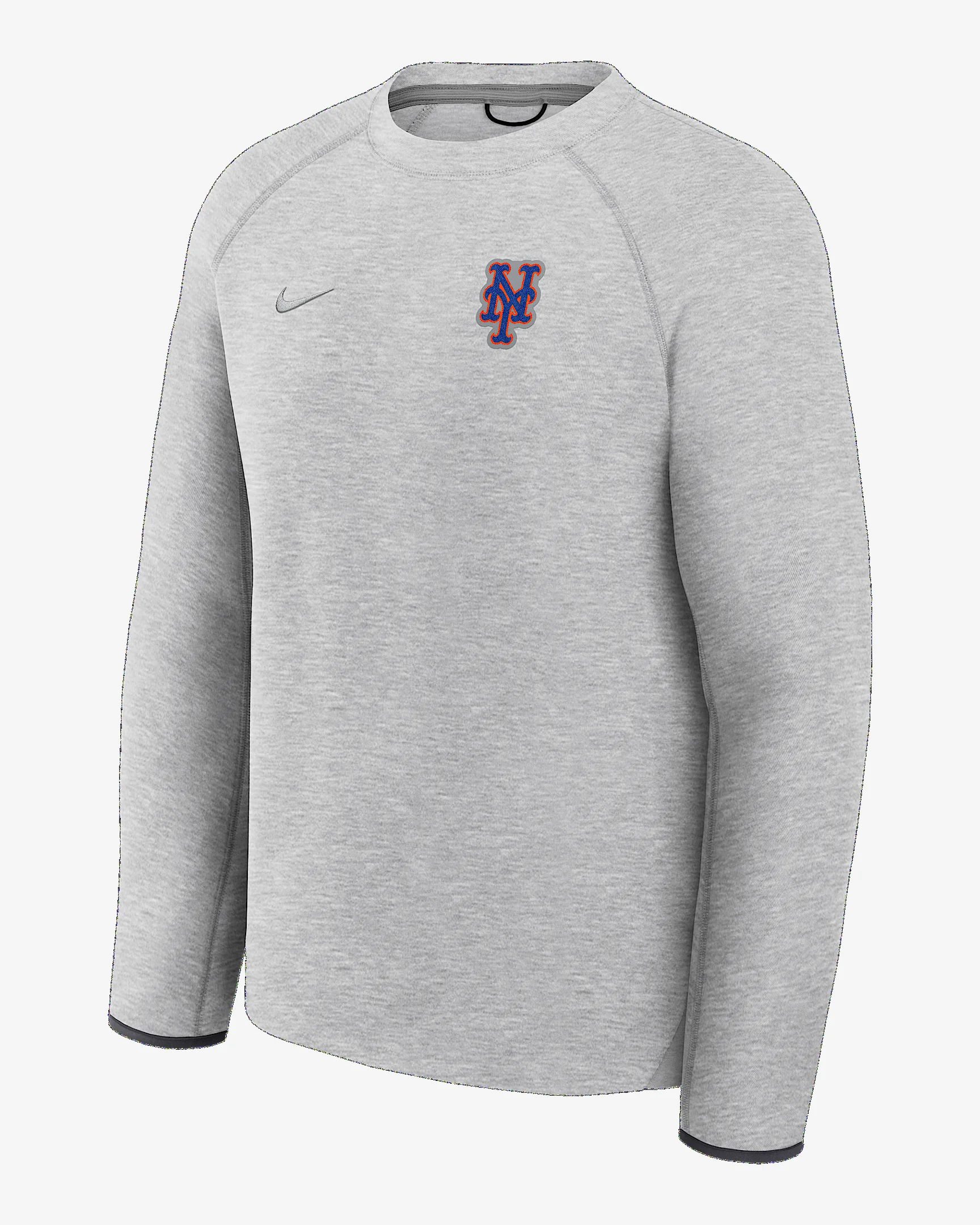 Featuring raglan sleeves with a wider underarm area and premium, heavyweight fleece fabric that feels smooth on the inside and outside, this New York Mets Tech Fleece Crew helps keep you warm in chilly temperatures as you support your favorite MLB club. Product Details - 47% recycled polyester/42% cotton/11% organic cotton - Machine wash - Imported - Shown: Dark Grey Heather - Style: 05L6086NNME-J35