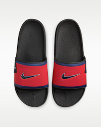 Rep the Atlanta Braves all the way down to your feet in these Offcourt slides. A cushioned synthetic leather strap features your team's logo, while an innovative foam midsole makes this slide so comfy, you’ll never want to take it off. Benefits - Contoured footbed cradles your foot while the dual-density foam adds cushioning and stability. - Soft, plush fabric lines the synthetic leather strap to add comfort. Product Details - Shown: Sport Red/Dark Smoke Grey/Midnight Navy - Style: FN2695-600
