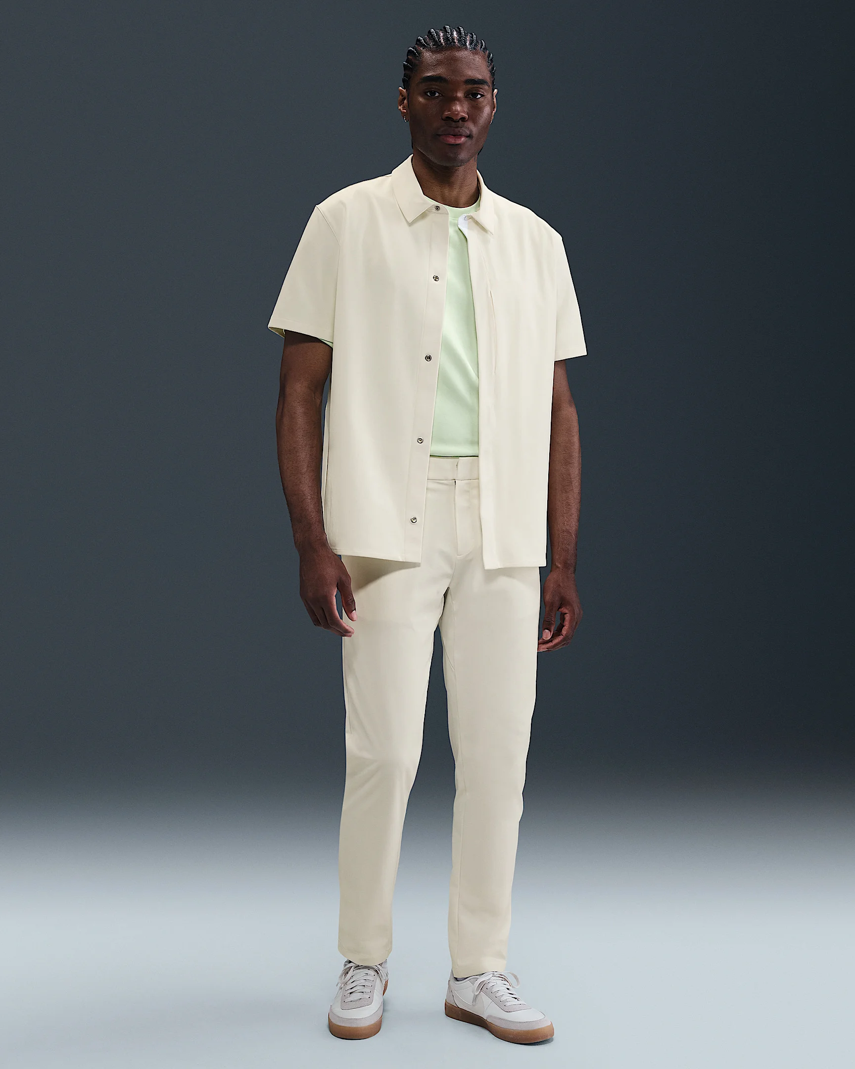 Made for all-day comfort, our PerfectStretch fabric has four-way stretch and a polished look. These tailored chinos put it to good use, adding plenty of storage and a locker loop for easy hanging. More Benefits - Elastic waistband and belt loops provide a secure fit. - This product provides UVA and UVB protection from the sun in the areas covered by the garment. To protect exposed areas, the use of good quality sunscreen is recommended. Product Details - Signature locker loop at wearer's left waistband seam - Bonded belt loops - Front zipper with hook-and-bar closure - Body: 100% polyester. Pocket bags: 86% polyester/14% spandex. - Machine wash - Imported - Shown: Sail/Sail/Light Bone - Style: HQ6918-133 SIZE & FIT Male model is wearing size M and is 6'2"188cm Sm fit: sleek and tailored