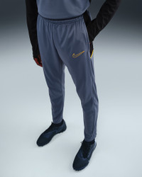 Built for soccer training, these smooth knit pants wick away sweat to help you stay focused on the field. The slim fit and zippered cuffs create a distraction-free feel as you push the pace through each drill and scrimmage. Benefits - Nike Dri-FIT technology moves sweat away from your skin for quicker evaporation, helping you stay dry and comfortable. - Smooth knit fabric feels light and breathable. - Mesh side panels create extra airflow. - Zippered pockets provide secure storage. - Zippered cuffs help make the pants easy to take on and off. Product Details - Elastic waistband with drawcord - Embroidered Swoosh logo - Body/Mesh: 100% polyester - Machine wash - Imported - Shown: Diffused Blue/Black/University Gold - Style: HJ3776-491 SIZE & FIT Model is wearing size M and is 6′1″184cm Standard fit: easy and traditional