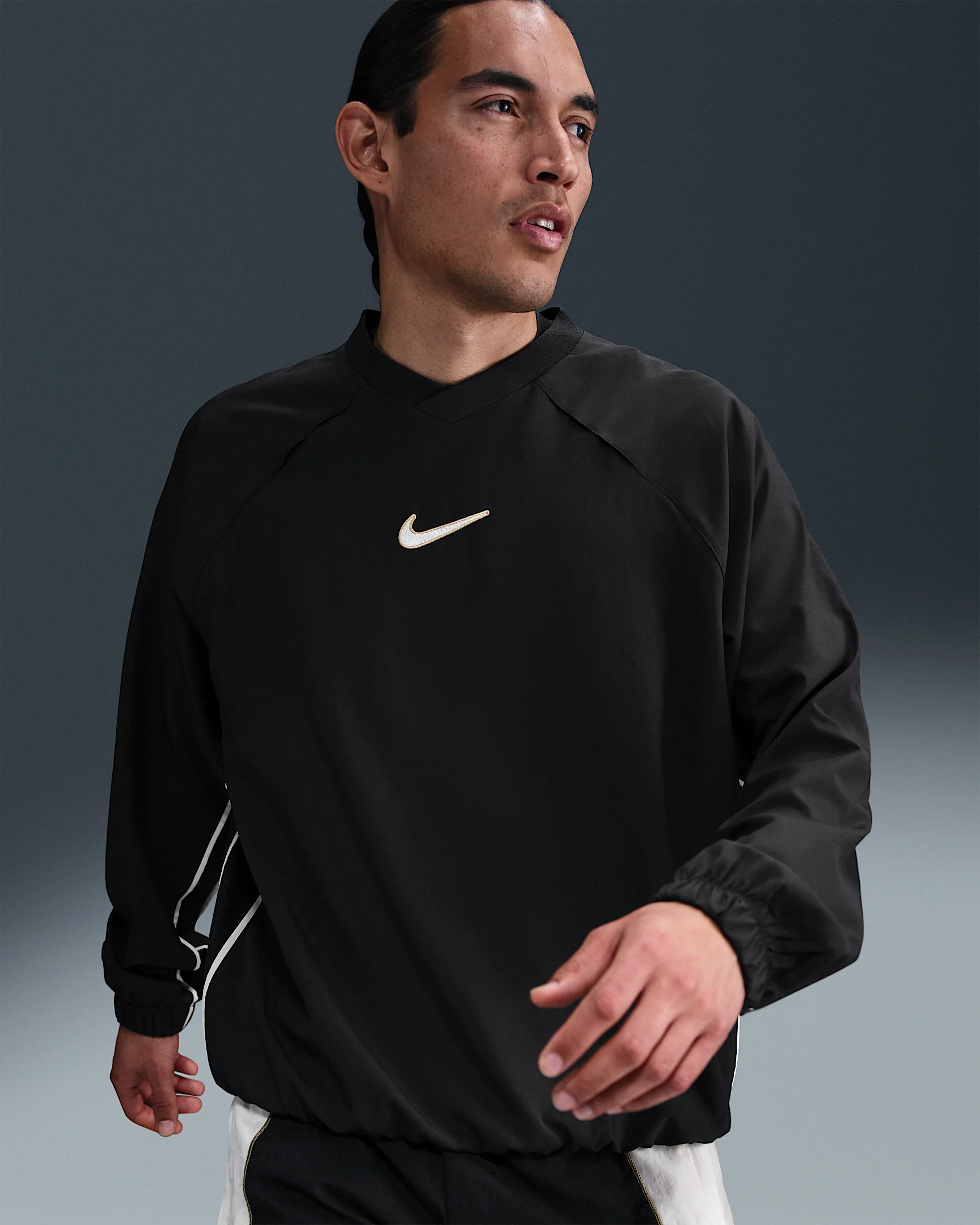 Inspired by retro soccer windbreakers, this sweat-wicking shell top is a go-to layer for the field and beyond. Breathable mesh panels help provide extra ventilation where you need it most. Benefits - Nike Dri-FIT technology moves sweat away from your skin for quicker evaporation, helping you stay dry and comfortable. - Smooth woven shell is durable and lightweight. - Mesh lining and panels provide extra breathability. Product Details - Elastic cuffs and hem - Body/Mesh: 100% polyester - Machine wash - Imported - Shown: Black/Black/Pale Ivory/Pale Ivory - Style: HJ4237-010 SIZE & FIT Model is wearing size M and is 5′11″179cm Standard fit: easy and traditional