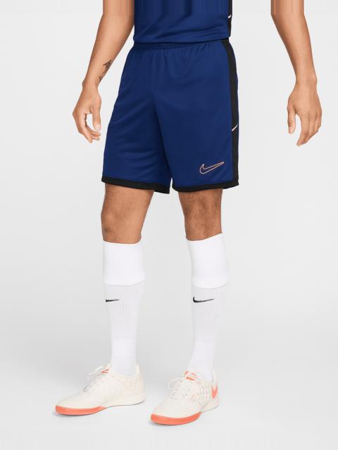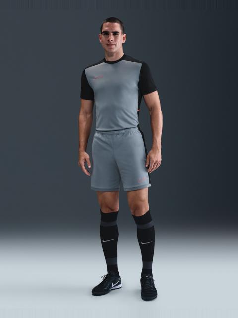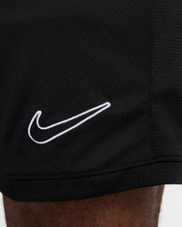 Built for soccer training, the Academy shorts feel ultralight and cool, with side mesh paneling for extra airflow. The slim fit gives a distraction-free feel as you push the pace through every drill and scrimmage. Benefits - Nike Dri-FIT technology moves sweat away from your skin for quicker evaporation, helping you stay dry and comfortable. - Smooth knit fabric feels light and cool. - Mesh sides provide extra breathability. - Elastic waistband with drawcord provides a secure fit. Product Details - Embroidered Swoosh logo - Body: 100% polyester. Mesh: 100% polyester. - Machine wash - Imported - Shown: Black/Black/White - Style: HJ3796-010 SIZE & FIT Model is wearing size M and is 6′2″188cm Sm fit: sleek and tailored