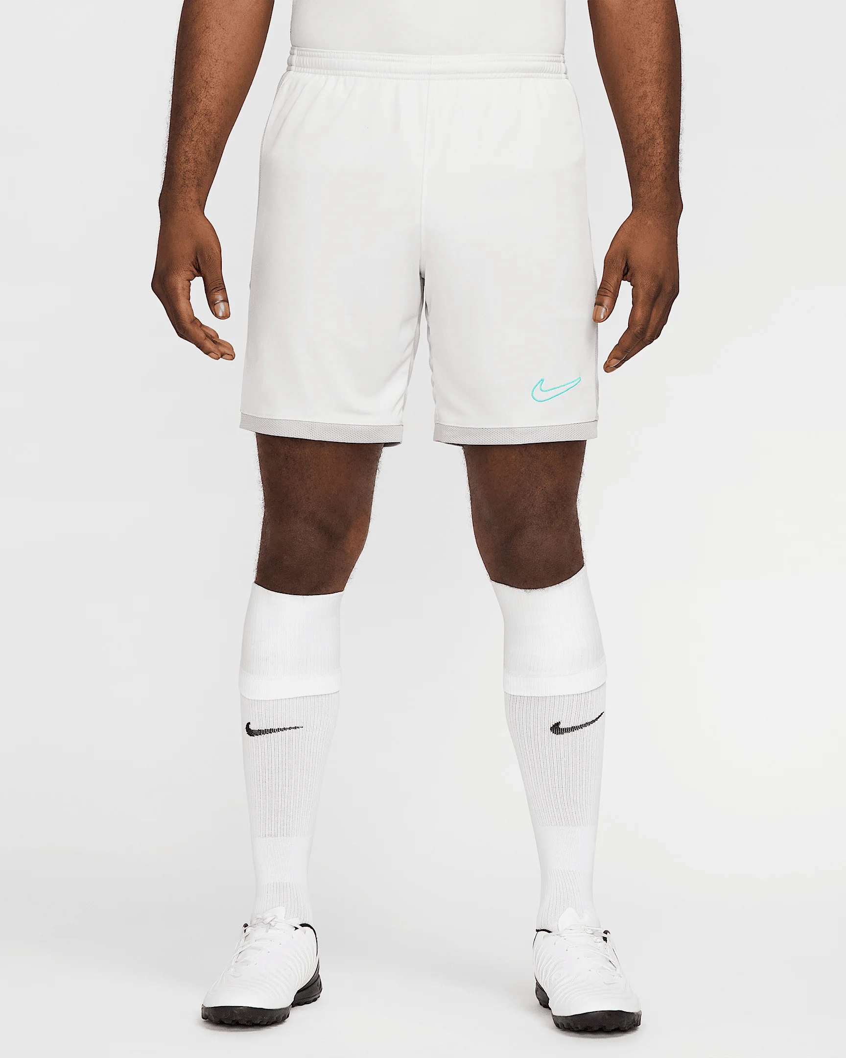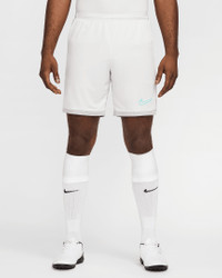 Built for soccer training, the Academy shorts feel ultralight and cool, with side mesh paneling for extra airflow. The slim fit gives a distraction-free feel as you push the pace through every drill and scrimmage. Benefits - Nike Dri-FIT technology moves sweat away from your skin for quicker evaporation, helping you stay dry and comfortable. - Smooth knit fabric feels light and cool. - Mesh sides provide extra breathability. - Elastic waistband with drawcord provides a secure fit. Product Details - Embroidered Swoosh logo - Body: 100% polyester. Mesh: 100% polyester. - Machine wash - Imported - Shown: Photon Dust/Light Smoke Grey/Dynamic Turquoise - Style: HJ3796-025 SIZE & FIT Model is wearing size M and is 6′2″188cm Sm fit: sleek and tailored