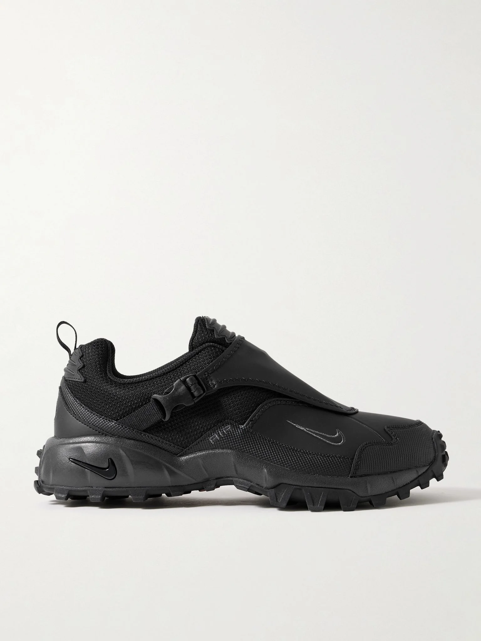 Pulled from the archives of the early noughties, Nike's 'ACG Phassad' sneakers have a buckle-fastening overlay inspired by tent flaps. They're made from panels of mesh and rubber and set on signature 'Air' soles that put a spring in every step. Size & Fit Fits true to size, please refer to Nike size guide below: - US 4 = UK 3.5/ EU 36 - US 4.5 = UK 4/ EU 36.5 - US 5 = UK 4.5/ EU 37.5 - US 5.5 = UK 5/ EU 38 - US 6 = UK 5.5/ EU 38.5 - US 6.5 = UK 6/ EU 39 - US 7 = UK 6/ EU 40 - US 7.5 = UK 6.5/ EU 40.5 - US 8 = UK 7/ EU 41 - US 8.5 = UK 7.5/ EU 42 - US 9 = UK 8/ EU 42.5 - US 9.5 = UK 8.5/ EU 43 - US 10 = UK 9/ EU 44 - US 10.5 = UK 9.5/ EU 44.5 - US 11 = UK 10/ EU 45 - US 11.5 = UK 10.5/ EU 45.5 - US 12 = UK 11/ EU 46 - US 12.5 = UK 11.5/ EU 47 - US 13 = UK 12/ EU 47.5 - US 13.5 = UK 12.5/ EU 48 - US 14 = UK 13/ EU 48.5 - Packaging reflects both men’s and women’s sizing Details & Care - Black mesh and rubber - Lace-up, buckle-fastening strap - Style number: HM7133-002 - Nike follows its own size conversion, therefore the size stated on the box will differ from the one provided in our conversion chart. To receive your correct fit, please refer to Size and Fit notes