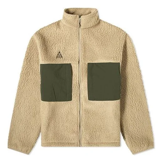 Nike ACG Colorblock Pocket Fleece Stand Collar Logo Jacket Khaki CT2949-247