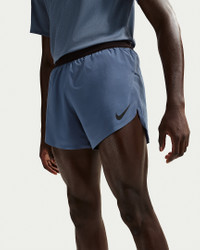 Designed for racing, the 4" AeroSwift shorts help you push through the worst to compete with the best. Their lightweight woven material helps wick sweat with every mile, and a knit liner gives the support you need. A total of 4 drop-in pockets give you a place to stash your gels, snacks and other race-day essentials. More Benefits - Designed for Racing - Length: 4" - Liner: Knit liner - Fabric: Lightweight woven - Storage: 4 drop-in pockets and zippered back pocket - Waistband: Elastic with drawcord Product Details - Body: 88% polyester/12% spandex. Elastic: 73% nylon/27% spandex. Lining: 89% polyester/11% spandex - Machine wash - Imported - Not intended for use as Personal Protective Equipment (PPE) - Shown: Diffused Blue/Black - Style: FN3352-491 SIZE & FIT Model is wearing size M and is 6'1"184cm Standard fit: easy and traditional