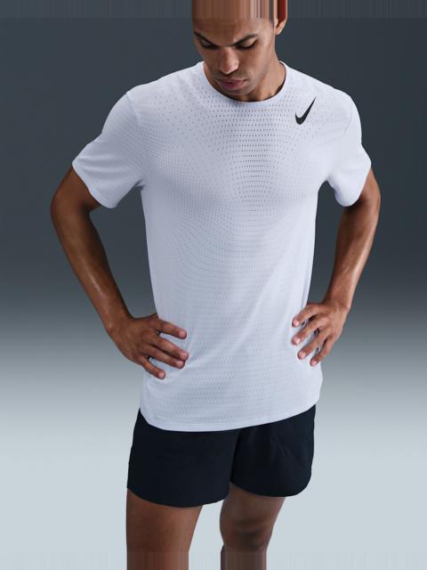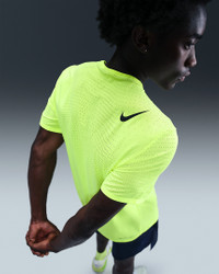 Built for speed, the AeroSwift collection is our pinnacle racing gear. This sweat-wicking engineered-knit top is lightweight and ultra-breathable to help keep you cool through the finish line. Benefits - Nike Dri-FIT ADV technology combines moisture-wicking fabric with advanced engineering and features to help you stay dry and comfortable. - Engineered knit fabric is lightweight and breathable. - Bonded seams at the shoulder reduce bulk for a lighter feel. - Swoosh logos have a non-reflective finish that won't catch flash photography during the race. Product Details - 100% polyester - Machine wash - Imported - Shown: Volt/Black - Style: HJ3377-702 SIZE & FIT Model is wearing size M and is 6′0″183cm Standard fit: easy and traditional