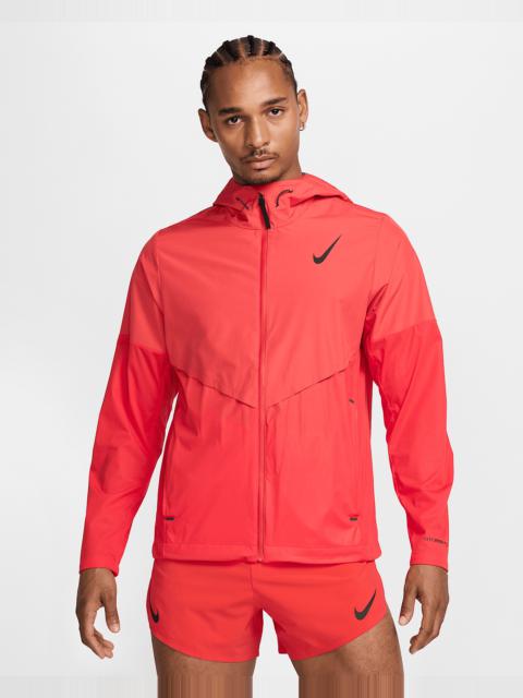 Designed for running, the Aerogami jacket helps you set the pace, no matter the miles or the season. Its waterproof and windproof design stands up to the elements. Our innovative Aerogami technology reacts to your body's sweat in real time to provide optimal airflow when you need it most. More Benefits - Zippered side pockets help you store your small valuables. - Adjustable bungee cords at the hood and hem help you personalize your fit. Product Details - Elastic cuffs - Full-zip - Cord lock on front and back of hood - Body: 100% polyester. Mesh: 82% polyester/18% spandex. - Machine wash - Imported - Shown: Comet Blue/Black - Style: FZ9039-411 SIZE & FIT Model is wearing size M and is 6′2″188cm Standard fit: easy and traditional