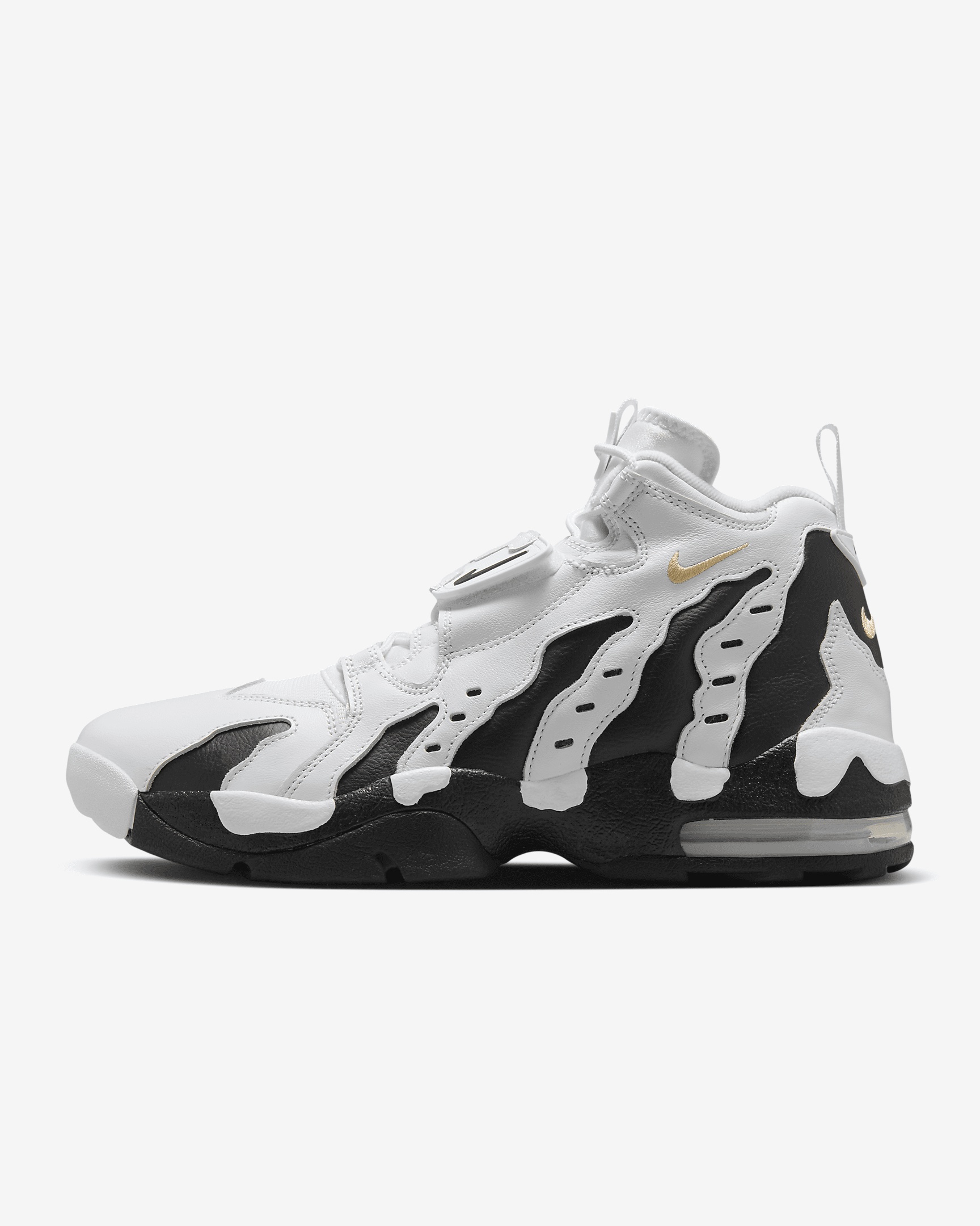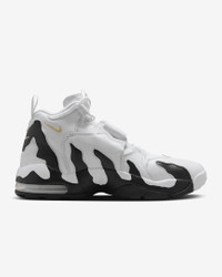 First released in 1996, the Air DT Max is back again. Featuring the adjustable strap and responsive cushioning of the original shoe, this version ups the style factor with a repeating "AIR" graphic. Benefits - Real and synthetic leather upper ages to soft perfection. - Visible Max Air unit in the heel provides responsive cushioning. - Midfoot strap with a hook-and-loop closure gives you a secure fit. Product Details - Shown: White/Vegas Gold/Black - Style: HM9236-100
