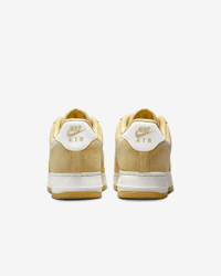 Comfortable, durable and timeless—it’s number one for a reason. The classic ‘80s construction pairs with bold details for style that tracks whether you’re on court or on the go. This version of the AF1 gets a seasonal refresh with soft suede, braided laces and an embroidered Swoosh logo. Benefits - Suede upper with a perforated toe box is breathable and comfortable. - Originally designed for performance hoops, the Nike Air cushioning adds lightweight, all-day comfort. - Rubber outsole with heritage hoops pivot circles delivers traction and durability. Product Details - Padded collar - Foam midsole - Rubber outsole - Shown: Buff Gold/Sail - Style: HJ4465-700