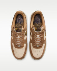 Comfortable, durable and timeless—it’s number one for a reason. This Air Force 1 pairs its classic silhouette with a mix of full-grain and suede leathers for durability and style. They're finished with Realtree® camo pattern accents. Benefits - Leather upper with perforated toe box is breathable and comfortable. - Nike Air unit provides lightweight cushioning. - Rubber outsole with classic pivot circles delivers traction and durability. Product Details - Low-cut silhouette - Padded collar - Foam midsole - Shown: Rattan/Rocky Tan/Seal Brown/Multi-Color - Style: IO9803-200