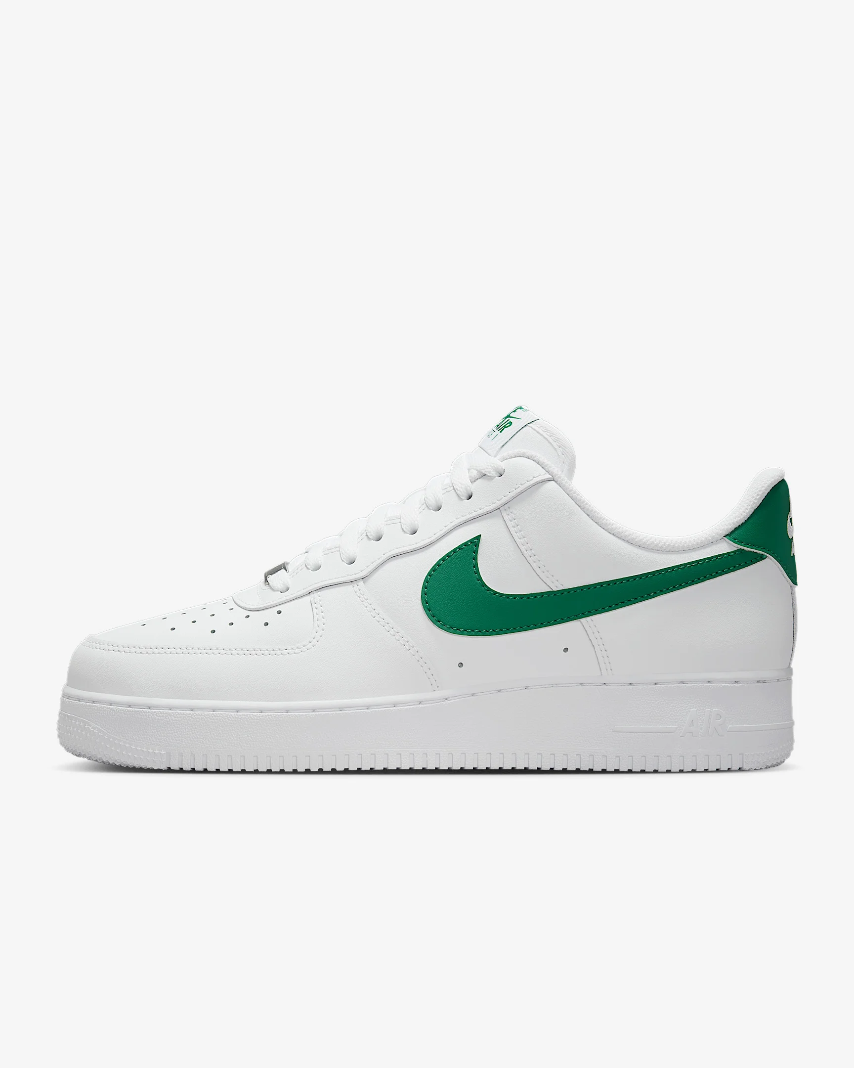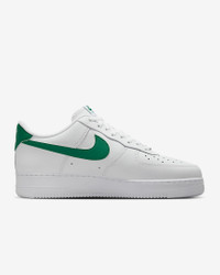 Comfortable, durable and timeless—it’s number 1 for a reason. The ‘80s construction pairs with classic colors for style that tracks whether you’re on court or on the go. Benefits - Leather upper softens and gains vintage character with wear. - Originally designed for performance hoops, the Nike Air cushioning adds all-day comfort. - Padded, low-cut collar looks sleek and feels great. Product Details - Perforations on the toe - Foam midsole - Rubber outsole - Shown: White/Malachite - Style: FJ4146-121