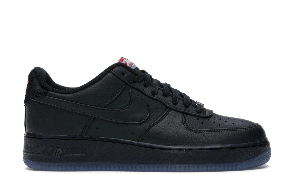 The Nike Air Force 1 Low Chicago (2019) is a performance shoe whose overall design was inspired by the city of Chicago. This version of the Nike Air Force 1 Low features an upper constructed with tumbled black leather. Perforations adorn the toe box for air flow, while tumbled leather panels form the toe cap, eyestays, and heel area. The Nike swoosh also appears as a black leather overlay on each side. The heel collar is black cow fur and features a Nike Air logo with a red swoosh. The tongue features a red and blue Chicago tag, displaying the colors of the city flag. The midsole is branded black rubber, while a translucent dark blue outsole pays homage to the Checkerboard Lounge on Chicago’s South Side. Our favorite things about this shoe are the subtle nods to the city of Chicago such as the tongue tag and the outsole. The Nike Air Force 1 Low Chicago (2019) was released on December 7, 2019, and retailed for $130. - Style CT1520-001 - Colorway Black/Black - Retail Price 130 - Release Date 2019-12-07 - Featured false - Product Line Nike Air Force