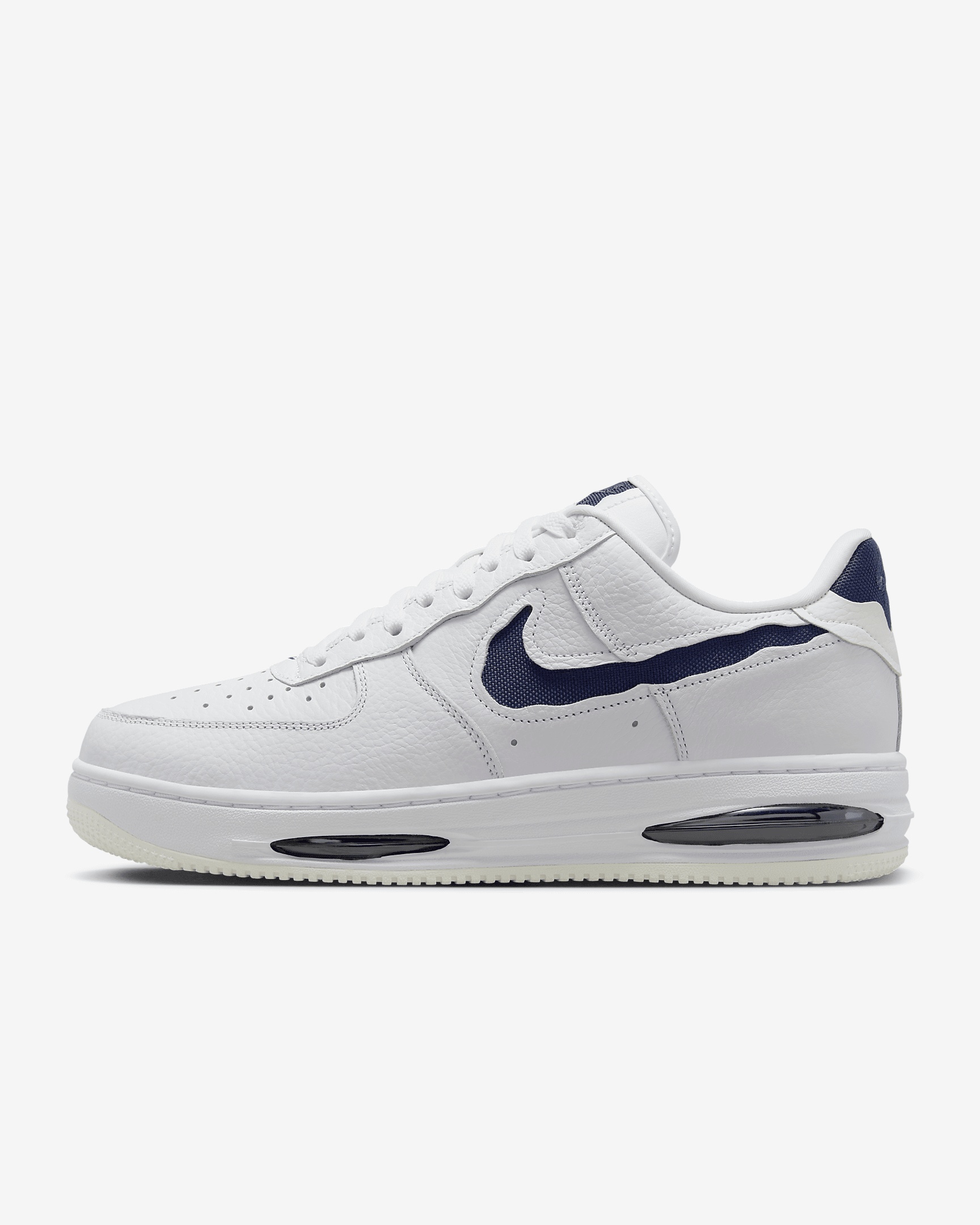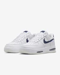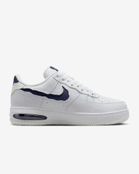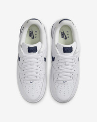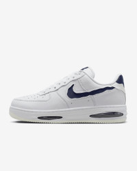 Comfortable, durable and timeless—it’s number 1 for a reason. Cutaway details expose a premium textile Swoosh logo and full-length Air units in the outsole, revealing the Air Force 1 in a new way. The classic ‘80s construction pairs with bold details for style that tracks whether you’re on court or on the go. Benefits - Leather upper with textile accents creates a classic look that’s built to last. - Originally designed for performance hoops, visible Air cushioning delivers lasting comfort. - Rubber outsole with heritage hoops pivot circles adds traction and durability. - Padded, low-cut collar looks sleek and feels great. Product Details - Shown: White/Summit White/Midnight Navy - Style: HF3630-102