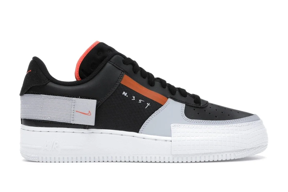 The Nike Air Force 1 Type Black Hyper Crimson features a black, white, Wolf Grey, and Hyper Crimson textile, foam, and leather upper, with transparent materials on one side to show off the closure system of the "Type" series. From there, Hyper Crimson takes on an orange hue that borders the tongue and outlines the small "Swoosh" on the back of the heel and a strap that sports a Hyper Crimson logo completes the design. The Nike Air Force 1 Type Black Hyper Crimson released in December of 2019 and retailed for $140. - Style CQ2344-001 - Colorway Black/Hyper Crimson-Wolf Grey-White - Retail Price 140 - Release Date 2019-12-14 - Featured false - Product Line Nike Air Force