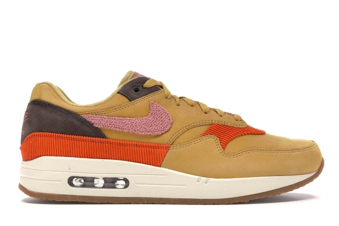 Taking a traditional Air Max 1 silhouette, these Nike Air Max 1 Crepe Wheat Gold Rust Pink introduce an innovative twist with a fresh colorway. These kicks arrive in a wheat gold, rust pink, and baroque brown colorway, deviating from the OG styling. Underfoot is where the magic happens, where Nike ushers in a crepe finish in place of the rubber outsole. The upper also boasts a blend of materials in different hues. A wheat gold Nubuck base starts things off with hints of suede arriving in baroque brown and orange corduroy accents on the side panels and base of the vamp. Chenille Swoosh branding colored in rust pink is responsible for adding a pop of color. In line with Air Max 1 styling, the Wheat Gold Rust Pink sneakers sport a visible Max Air unit for lightweight cushioning. What our experts like about the Wheat Gold Rust Pink Air Max 1 is the pink-themed Chenille Swoosh that introduces color to the monotone shoe. The resulting colorway is simple yet striking on the kicks. The Nike Air Max 1 Crepe Wheat Gold Rust Pink was released on October 7, 2018, retailing for $130. - Style CD7861-700 - Colorway Wheat Gold/Rust Pink-Baroque Brown - Retail Price 130 - Release Date 2018-10-07 - Featured false - Product Line Nike Air Max