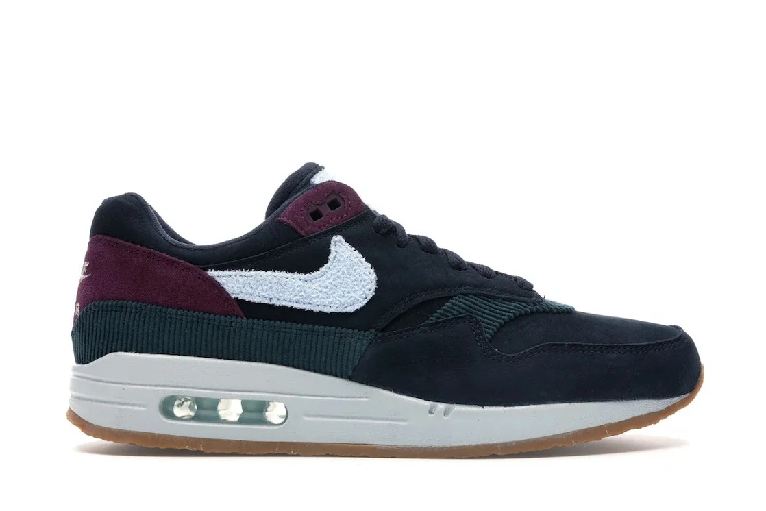 The Nike Air Max 1 Dark Obsidian Crepe Sole is a specific variation of Nike’s Air Max 1 sneakers appearing in Dark Obsidian, Cobalt Tint and Ocean Bliss colors. The Nike Air Max 1 Dark Obsidian Crepe Sole sneaker’s design includes a predominantly dark Obsidian leather upper contrasting with its Cobalt Tint, white and Ocean Bliss accents to give it a unique look. The sneaker’s design also features a Swoosh on the lateral sides, a white tongue tag, and a lacing system to ensure a comfortable and adjustable fit during wear. Its lower construction features a white rubber midsole for impact absorption and support, and a treaded outsole for optimum traction and grip on different surfaces. Concluding its design is the visible Air Unit in the midsole for cushioning. The Nike Air Max 1 Dark Obsidian Crepe Sole was first released as one of Nike’s Air Max 1 brand of sneakers on November 15, 2018 with a release price of $150. - Style CD7861-400 - Colorway Dark Obsidian/Cobalt Tint-Ocean Bliss - Retail Price 150 - Release Date 2018-11-15 - Featured false - Product Line Nike Air Max