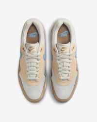 Meet the leader of the pack. Walking on clouds above the noise, the Air Max 1 blends timeless design with cushioned comfort. Sporting a Max Air unit and mixed materials, this icon hit the scene in ‘87 and continues to be the soul of the franchise today. Benefits - Upper mixes synthetic leather, suede and mesh for a layered look built to last. - Foam midsole with a Max Air unit in the heel provides lightweight cushioning. - Rubber Waffle outsole adds durable traction and heritage style. - Padded, low-cut collar feels soft and comfortable. Product Details - Shown: Light Bone/Sanddrift/Khaki/Psychic Blue - Style: FZ5808-009