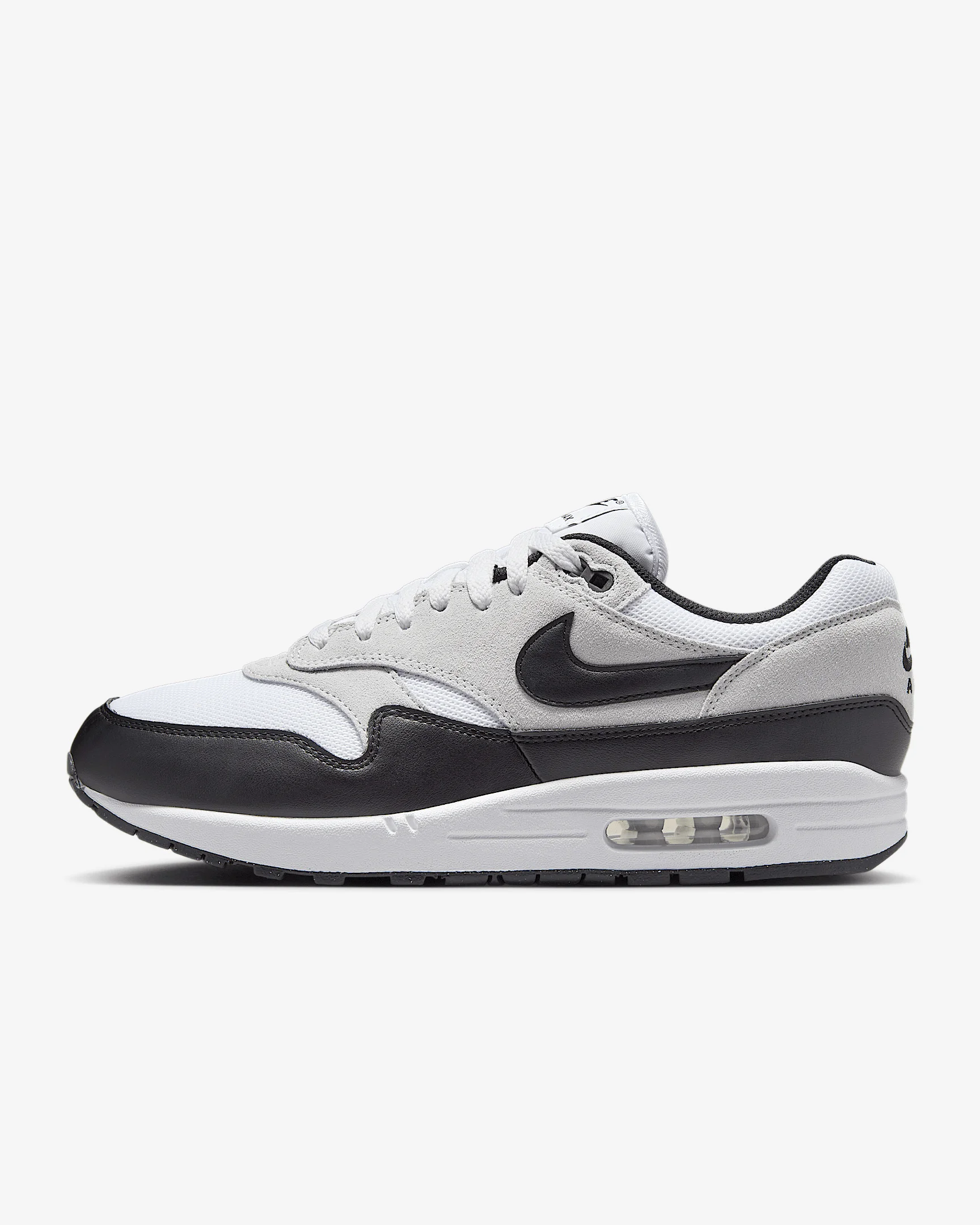 Meet the leader of the pack. Walking on clouds above the noise, the Air Max 1 blends timeless design with cushioned comfort. Sporting a Max Air unit and mixed materials, this icon hit the scene in ‘87 and continues to be the soul of the franchise today. Benefits - Upper mixes synthetic leather, suede and mesh for a layered look built to last. - Foam midsole with a Max Air unit in the heel provides lightweight cushioning. - Rubber Waffle outsole adds durable traction and heritage style. - Padded, low-cut collar feels soft and comfortable. Product Details - Shown: White/Pure Platinum/Black - Style: FZ5808-102