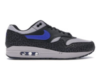 The Nike Air Max 1 Safari Reflective Black is an upgraded version of the Air Max 1 that features a unique Safari pattern on its upper with a reflective finish. The upper of the Air Max 1 Safari Reflective Black is crafted with a Safari pattern that is characterized by small Off Noir speckles on an Atmosphere Grey background. Additionally, the rubber outsole is durable and is designed to offer traction on various surfaces. The shoe's design also includes a padded collar, adding more comfort and support to your ankle. We think that the of the standout features of the Air Max 1 Safari Reflective Black is its visible Air sole unit. This cushioning system provides unmatched comfort and support while running or walking. The Nike Air Max 1 Safari Reflective Black is a shoe that balances cutting-edge technology and style. The Nike Air Max 1 Safari Reflective Black was released on November 15th, 2018 at a retail price of $120. - Style BQ6521-001 - Colorway Off Noir/Atmosphere Grey-Hyper Blue - Retail Price 120 - Release Date 2018-11-15 - Featured false - Product Line Nike Air Max