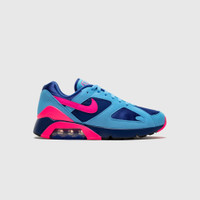 - HQ1706 401 - University Blue/Hyper Pink - The 1991 classic Nike Air Max 180 gets a bright, playful Hyper Pink colorway on the first runner to add a whole-heel Air unit. - Navy mesh upper - University blue suede overlays - University blue mesh tongue with Persian violet "180 AIR" branding - Hyper pink leather swoosh - University blue suede heel with Hyper pink "NIKE AIR" embroidery - Navy midsole with 180-degree max air unit - Navy and Hyper pink rubber outsole
