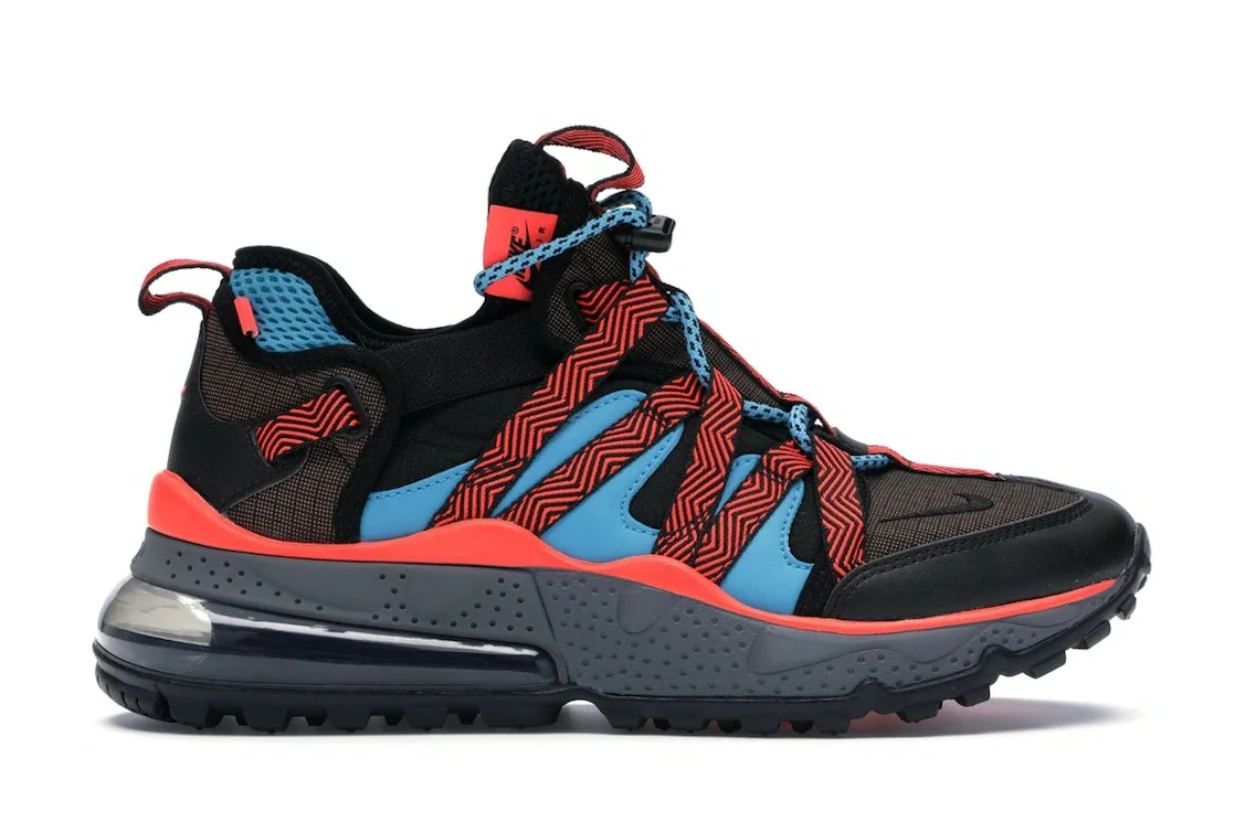 The Nike Air Max 270 Bowfin Dark Russet is a rugged style athletic shoe featuring a Black and Dark Russet textile upper, accented by Bright Crimson and Black printed ribbon detailing. American footwear and athletic wear brand Nike is committed to advancing the design and production of shoes for numerous uses, including sports, running, and lifestyle. The Air Max 270 Bowfin is one of Nike’s trail sneaker designs, which features the signature visible Air Max 270 heel bag, which offers support and cushioning for long distance treks. The fabrication is a mix of leather, mesh, and ripstop nylon, accented by bungee cord laces in Light Blue Fury and Black. A gray and Bright Crimson midsole houses a translucent black Air unit, finished by a Black outsole. Nike branding appears on the outer toe, rear heel, and tongue. Our experts feel that the best feature of the Air Max 270 Bowfin is its bold aesthetic, which looks great on the trail or the street. The Nike Air Max 270 Bowfin Dark Russet was released on November 1, 2018, and retailed at $160. - Style AJ7200-200 - Colorway Dark Russet/Bright Crimson-Light Blue Fury-Black - Retail Price 160 - Release Date 2018-11-01 - Featured false - Product Line Nike Air Max
