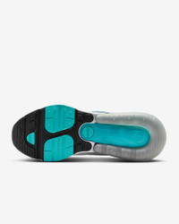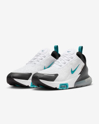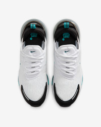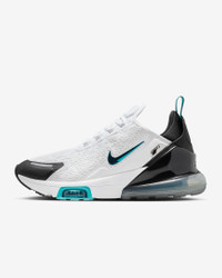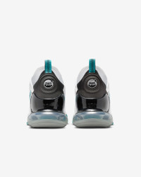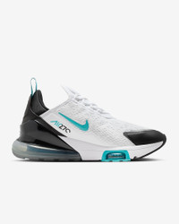 Nike's first lifestyle Air Max brings you style, comfort and big attitude. The design draws inspiration from Air Max icons, showcasing Nike's greatest innovation with its large window and fresh array of colors. Benefits - Max Air 270 unit delivers all-day cushioning. - Textiles and synthetic leather overlays on the upper provide a lightweight fit and airy feel. - Foam midsole feels soft and comfortable. - Stretchy inner sleeve and bootie-like construction creates a personalized fit. - Rubber on the outsole adds traction and durability. Product Details - Shown: White/Black/Metallic Silver/Dusty Cactus - Style: IO9883-103
