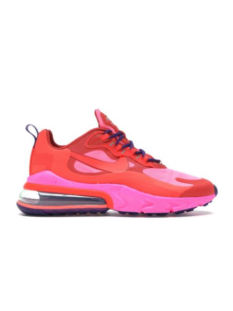The upper of the Nike Air Max 270 React Light Beige Chalk is crafted from a blend of materials, including synthetic overlays and breathable mesh. The colorway features a light beige hue with chalky accents. The React foam midsole contributes to the sneaker's overall cushioning system, offering a soft and responsive underfoot feel. This technology is designed to enhance comfort during prolonged wear and various activities. The outsole of the Nike Air Max 270 React Light in Beige Chalk usually features a tread pattern designed to provide traction on various surfaces. This pattern enhances grip and stability, making it suitable for both urban environments and light activities. One of the key features of the Nike Air Max 270 React Light Beige Chalk that StockX team love is the mid-top profile that offers ankle support while allowing for freedom of movement. Released on 30th July 2019, the shoe took an initial market price of $150. - Style AO4971-200 - Colorway Light Beige Chalk/Summit White/Team Orange/Platinum Tint - Retail Price 150 - Release Date 2019-07-30 - Featured false - Product Line Nike Air Max