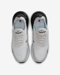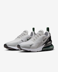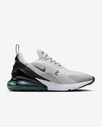 Nike's first lifestyle Air Max brings you style, comfort and big attitude in the Nike Air Max 270. The design draws inspiration from Air Max icons, showcasing Nike's greatest innovation with its large window and fresh array of colors. Benefits - The Max Air 270 unit delivers unrivaled, all-day comfort. - The sleek, running-inspired design roots you to everything Nike. - Woven and synthetic fabric on the upper provides a lightweight fit and airy feel. - Foam midsole feels soft and comfortable. - Stretchy inner sleeve and booty-like construction creates a personalized fit. - Rubber on the outsole adds traction and durability. Product Details - Mesh details for an airy feel - Synthetic and textile - 2-piece midsole - Shown: Vast Grey/Light Smoke Grey/Black/Fir - Style: AH8050-032 SIZE & FIT Fits small; we recommend ordering a half size up