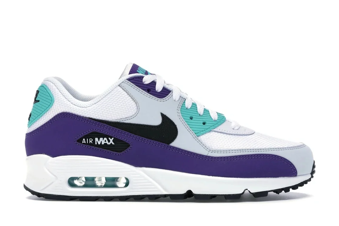 The Nike Air Max 90 Grape is one of the variations of Nike’s Air Max sneakers, decorated with white, black, Hyper Jade, Court Purple, and Pure Platinum colors. The Nike Air Max 90 Grape features a leather and mesh upper section that contrasts with black, purple, Hyper-Jade, and platinum accents. The design also features a white Air Max sole unit with a visible Air bubble. The design also features a white rubber midsole for cushioning and support, while its black outsole is treaded for traction. The AIR MAX brandings on the midfoot and Nike Air on the heel complete the design. When making its debut on February 1, 2019, the Nike Air Max 90 Grape retailed at $110. - Style AJ1285-103 - Colorway White/Black-Hyper Jade-Court Purple-Pure Platinum - Retail Price 110 - Release Date 2019-02-01 - Featured false - Product Line Nike Air Max