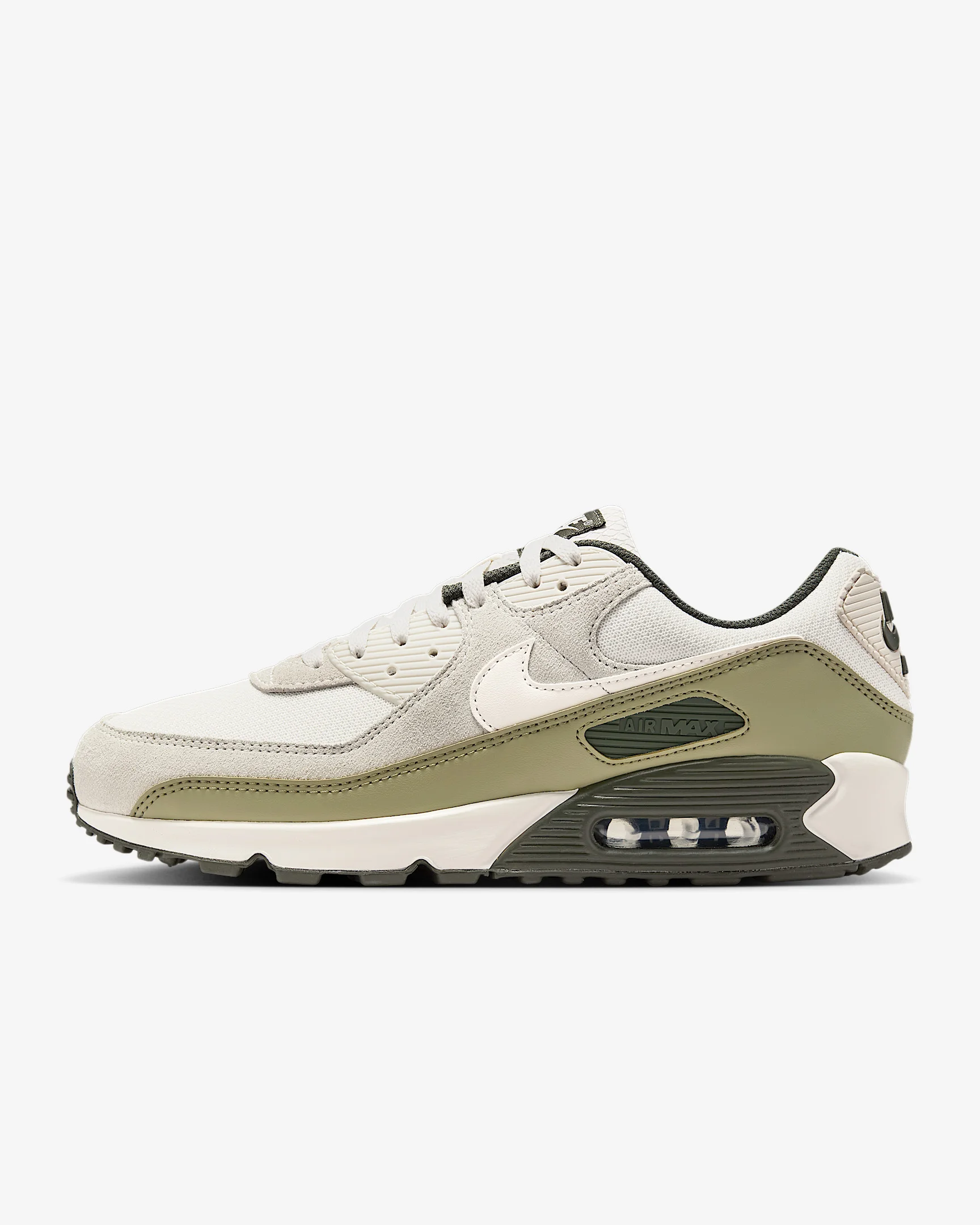 The Air Max 90 stays true to its running roots with the iconic Waffle sole. Finished with easy-to-style colors, stitched overlays and textured accents create the '90s look you love. Visible Max Air cushioning adds comfort to your journey. Benefits - Textile upper with leather and synthetic overlays creates a layered look that lasts. - Originally designed for performance running, Max Air cushioning puts the history of comfort beneath your feet. - Rubber Waffle outsole delivers durable traction and heritage style. Product Details - Padded collar - Foam midsole - Shown: Neutral Olive/Light Orewood Brown/Cargo Khaki/Phantom - Style: IH0262-276