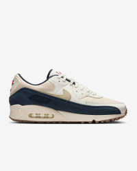 Elevated by premium leather, these Air Max 90's stay true to their running roots with the iconic Waffle sole and textured accents for that classic 90's look. Finished with easy-to-style colors, the visible cushioning adds comfort to your journey. Benefits - Premium leather upper with synthetic overlays creates a layered look that lasts. - Nike Air technology absorbs impact for cushioning with every step. - Rubber Waffle outsole delivers durable traction and heritage style. Product Details - Padded collar - Foam midsole - Shown: Pale Ivory/Thunder Blue/Sail/Light Khaki - Style: IH4379-110