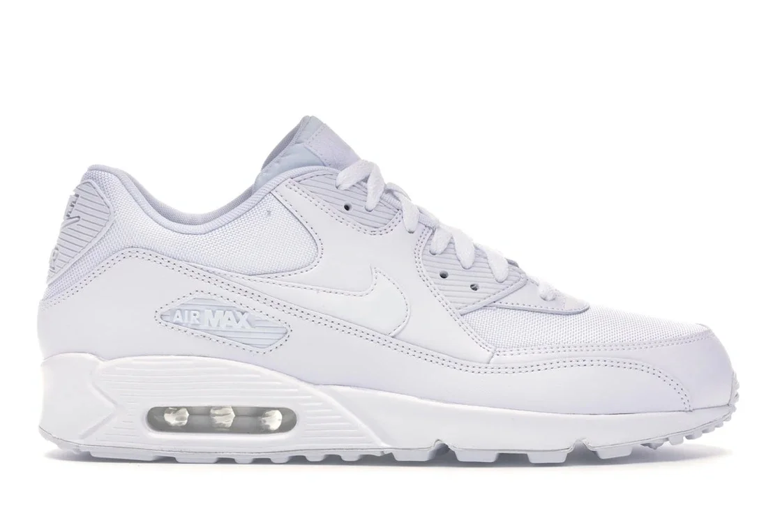 The Nike Air Max 90 Triple White is a special colorway of the iconic Air Max 90 which debuted back in 1990. This classic shoe features an all-white color scheme from the upper to the midsole and outsole, creating a minimalist look. The upper of the Air Max 90 Triple White is constructed with a combination of leather, mesh, and synthetic overlays, with its design showcasing distinct paneling, including the iconic Swoosh logo on the sides and a visible Air Max unit in the heel. It also has a padded collar and cushioned midsole. Other than the Swoosh, other branding details on this shoe include the Nike Air logo on the heel tab, a classic Nike logo on the tongue and Air Max branding on the lateral ankle. The Air Max 90 Triple White was first released for retail at the price of $120 on 17th May 2019. - Style 537384-111 - Colorway White/White-White-White - Retail Price 120 - Release Date 2019-05-17 - Featured false - Product Line Nike Air Max