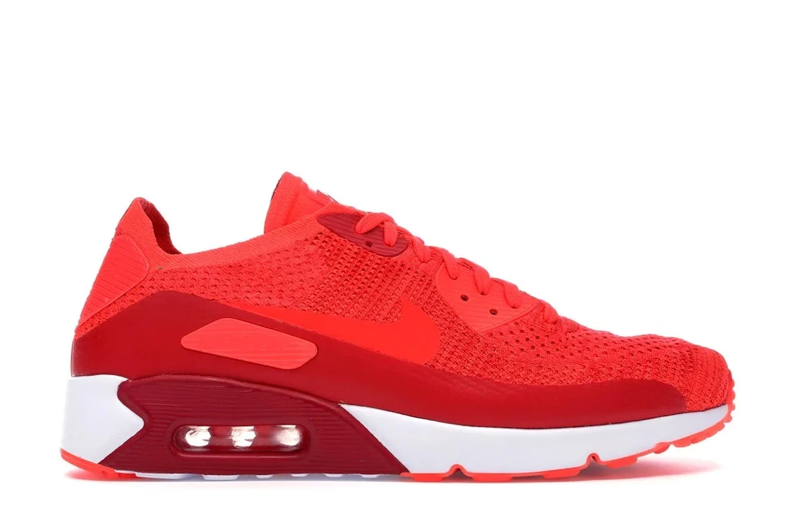 The Nike Air Max 90 Ultra 2.0 Flyknit Bright Crimson is a sneaker from the Nike Air Max 90 Ultra 2.0 Flyknit lineup in a " Bright Crimson" colorway. This Nike Air Max 90 features a Bright Crimson upper constructed with Nike’s breathable Flyknit. Other materials used on the upper include synthetic plastic on the contrasting mudguard and TPU on the eyelets, heel, and " Air Max" branded windows. Branding details appear on the matching Swooshes on the sides, tongue, insole, and heel. A White midsole with a visible Max Air unit at the heel rests on a Bright Crimson rubber outsole. Something we love about this Air Max 90 is its material and colorway. The upper construction offers a snug fit that wraps the foot and lightweight breathability for complete comfort. The Nike Air Max 90 Ultra 2.0 Flyknit Bright Crimson was made available on May 15, 2017, for a retail price of $160. - Style 875943-600 - Colorway Bright Crimson/Bright Crimson - Retail Price 160 - Release Date 2017-05-15 - Featured false - Product Line Nike Air Max