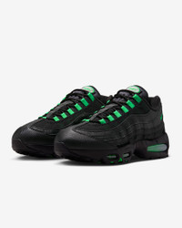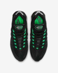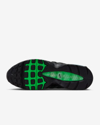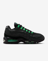 Taking inspiration from the human body and '90s track aesthetics, the Air Max 95 mixes unbelievable comfort with fast-paced style. The wavy side panels add natural flow to any outfit while visible cushioning in the heel and forefoot delivers performance comfort. Benefits - Upper combines real and synthetic leather with airy textiles for a layered look built to last. - Visible Max Air cushioning provides lightweight cushioning. - Flex grooves in the midsole/outsole let you move freely. - Inspired by the human anatomy, the midsole/outsole represent the spine, upper panels are the muscles and the laces are the shoe’s ribs. Product Details - Foam midsole - Rubber outsole - Shown: Black/Black/Pearl Grey/Green Shock - Style: IB1667-002