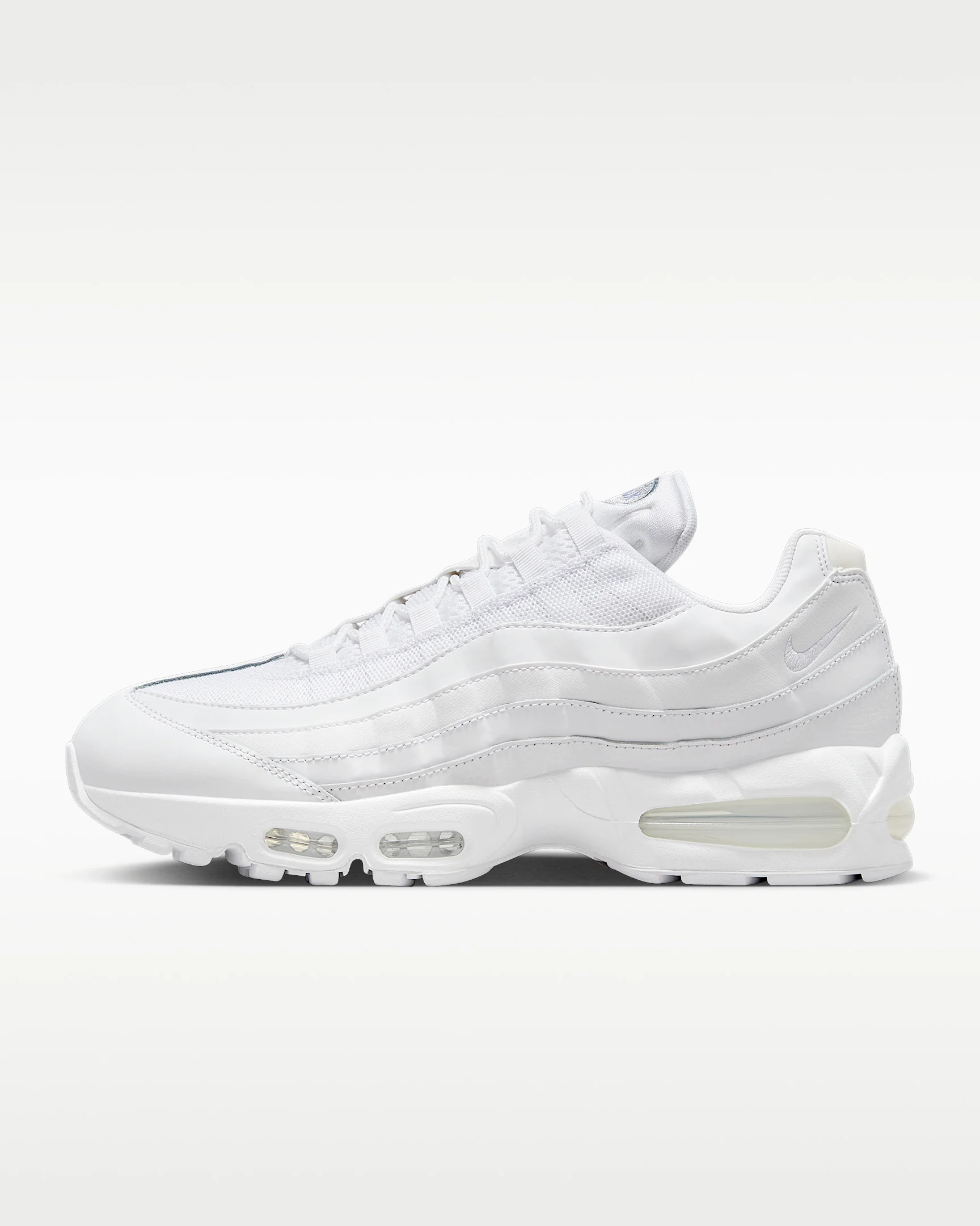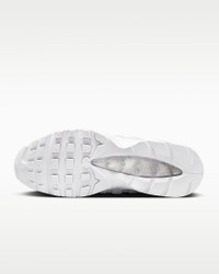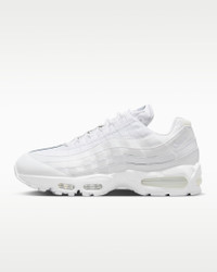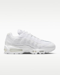 Taking inspiration from the human body and '90s track aesthetics, the Air Max 95 mixes unbelievable comfort with fast-paced style. The wavy side panels add natural flow to any outfit while visible cushioning in the heel and forefoot delivers performance comfort. Benefits - Upper combines real and synthetic leather with airy textiles for a layered look built to last. - Visible Max Air cushioning provides lightweight cushioning. - Flex grooves in the midsole/outsole let you move freely. - Inspired by the human anatomy, the midsole/outsole represent the spine, upper panels are the muscles and the laces are the shoe’s ribs. Product Details - Foam midsole - Rubber outsole - Not intended for use as Personal Protective Equipment (PPE) - Shown: White/White/Pure Platinum/White - Style: HM8755-100