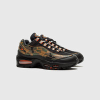 - HQ1973 001 - Black/Safety Orange-Metallic Silver - Nike celebrates 30 Years of the iconic silhouette - Camo paneled upper with Black leather toe cap - Black mesh tongue with Metallic Silver leather lace cover & "Air Max" branding - Metallic Silver with Safety Orange accent lace loops - Safety Orange embroidered mini swoosh at the ankle - Metallic Silver leather heel panel with "NIKE AIR" branding - Black foam midsole with "AIR" units in the forefoot & heel - Black rubber outsole